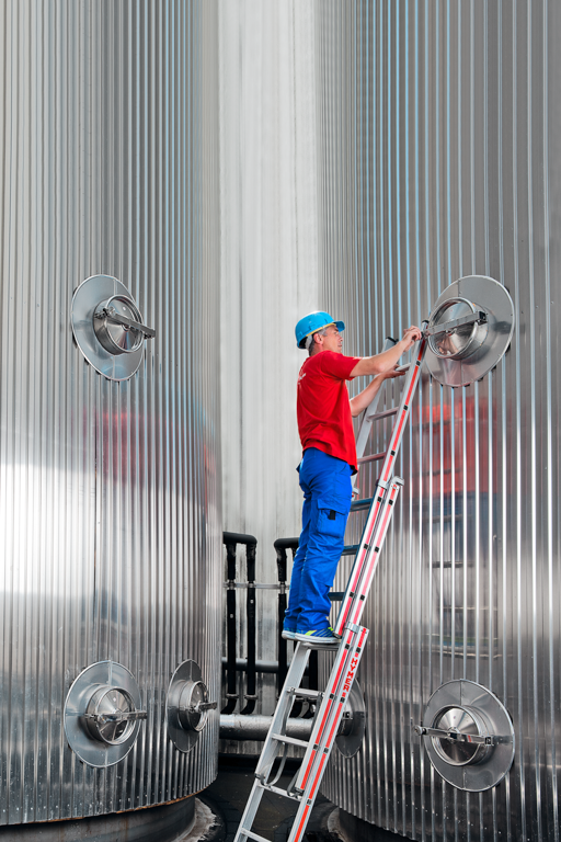 - Hinweis: Zur TRBS-konformen Verwendung als Arbeitsplatz ist bei Sprossenleitern entsprechendes Zubehör wie Einhängetritte (Universal-Leitertritt klappbar) zu verwenden.